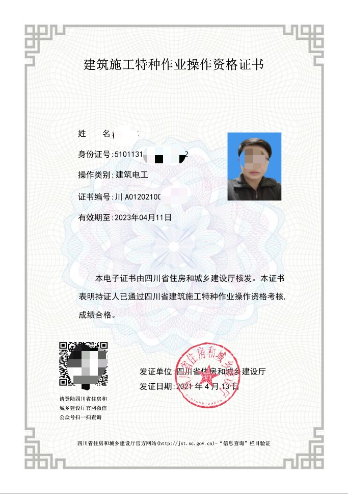電工證,焊工證,登高架設(shè)證,高處安裝維護(hù)拆除證,電力電纜證,繼電保護(hù)證,電氣實(shí)驗(yàn)證,防爆電器作業(yè)證,制冷工證,主要負(fù)責(zé)人證,安全管理人員證